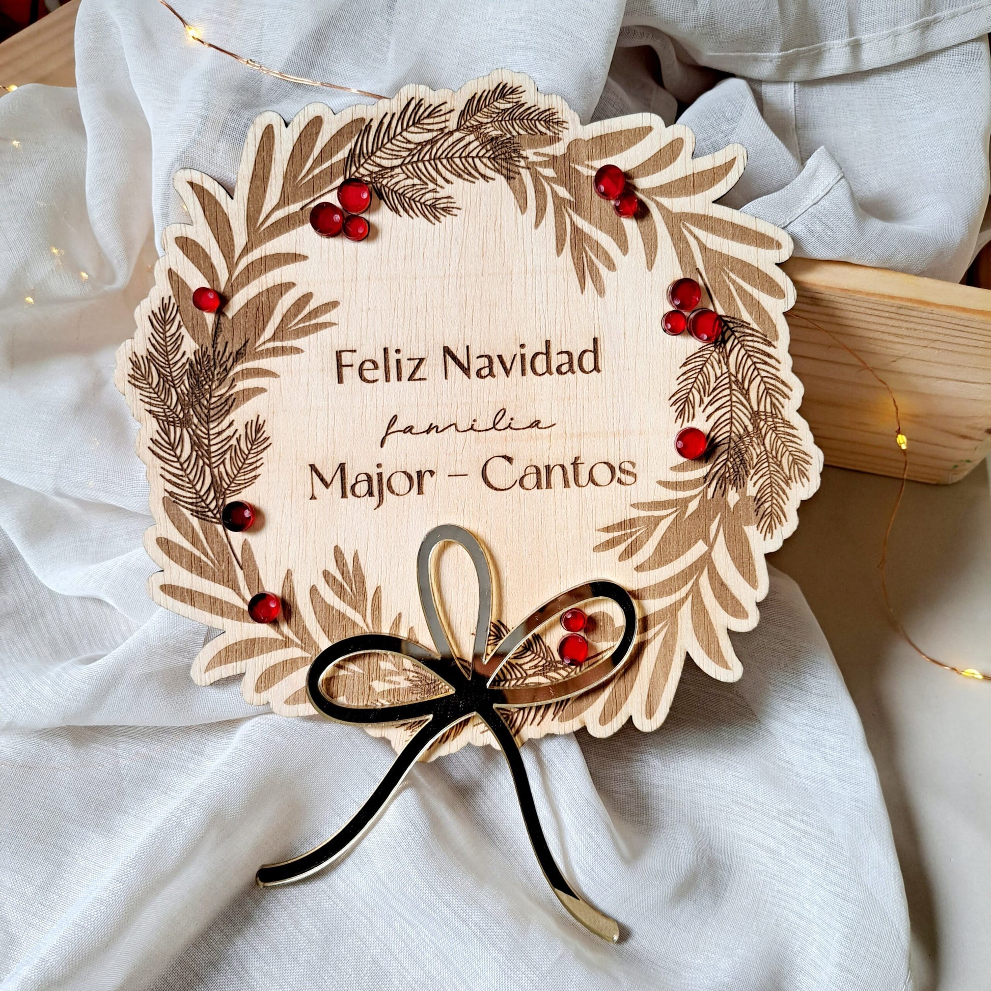 Esta Navidad, eleva la decoración de tu hogar con nuestra Corona de Madera Personalizada. Cada pieza es meticulosamente diseñada y tallada a mano para reflejar tu estilo y dar la bienvenida a tus invitados con un toque de calidez y elegancia. Personaliza tu corona con nombres, fechas o mensajes especiales para crear un adorno que será el centro de atención en esta temporada festiva.