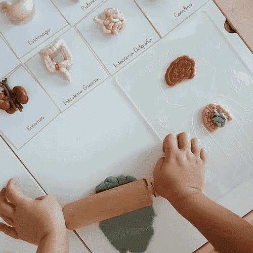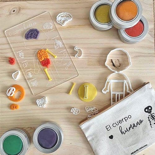 Tienes la opción de añadir al set un bote de plastilina natural casera con marcado CE de color rosa para hacer todos los órganos del cuerpo.