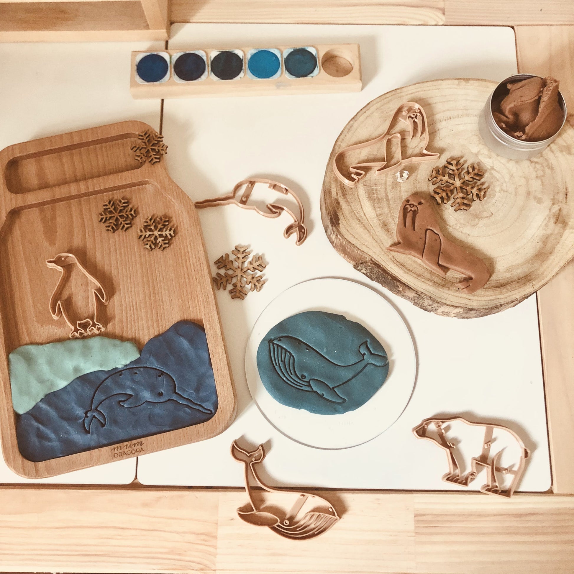Incluye: ballena azul, morsa, pingüino, narval, y oso polar.